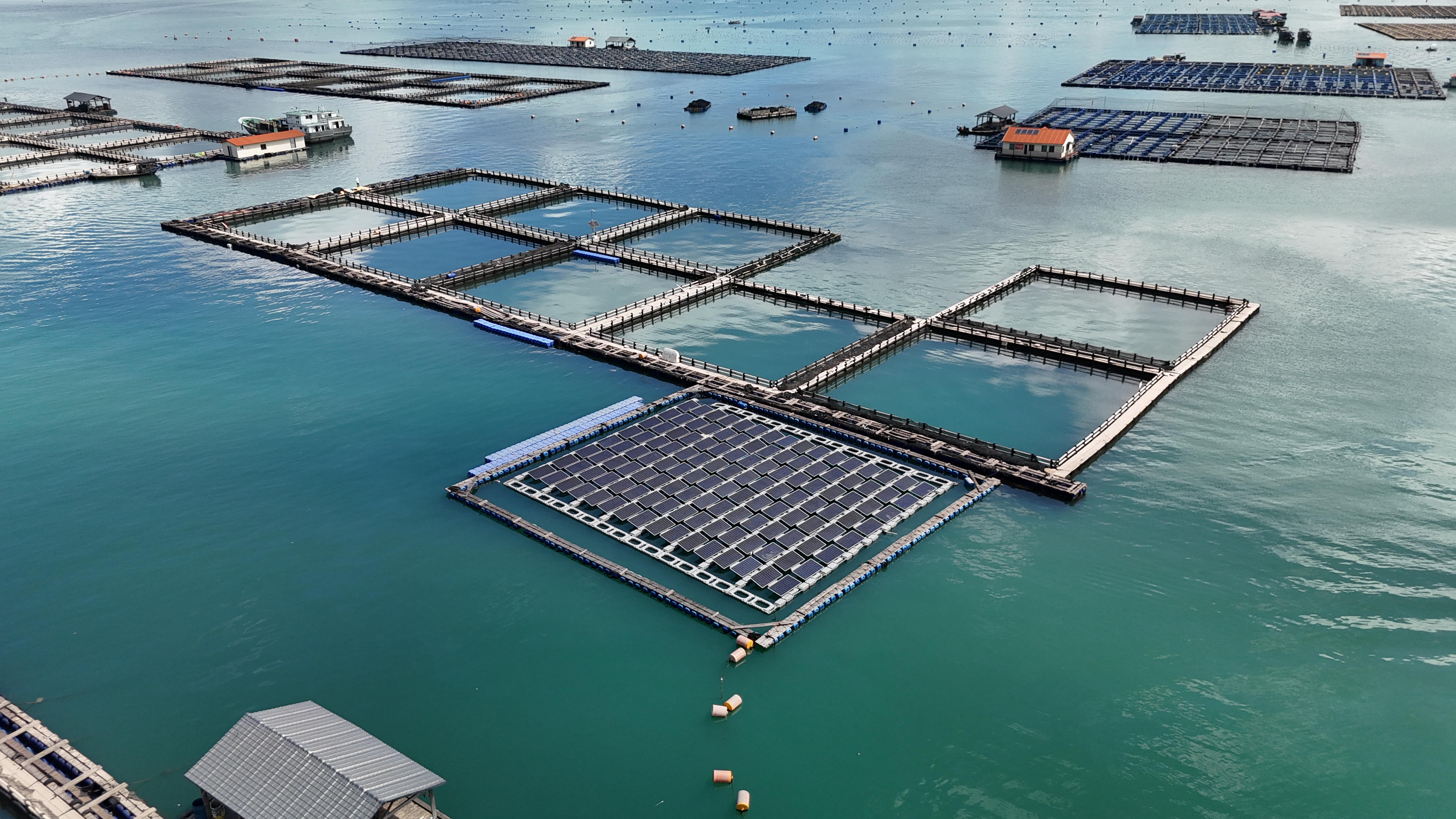 海上电力紧缺、用电不便是渔民生产生活中的关键难题。为此,我市积极探索,建成集风力发电、光伏发电、储能系统、充电桩、海水淡化应用为一体的“风、光、储、充、用”微电网示范项目。在碧波荡漾的三都澳海面上,8列128块光伏板组成的漂浮式光伏电站平均每天发电165千瓦时,渔排木屋的景观风机与配套储能系统协同运作,进一步保障供电可靠性。该项目不仅解决海上渔排长期面临的用电问题,提升渔民生活品质,还有效推动“海上田园”绿色转型、渔业产值显著提升,为海洋经济高质量发展注入澎湃动能。