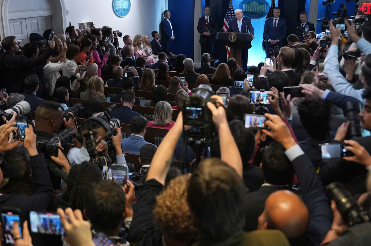 当地时间4月6日,美国总统特朗普在白宫举行新闻发布会